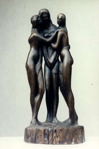 "Tre Grazie" 72x40 cm. - Legno di abete bruciato.
