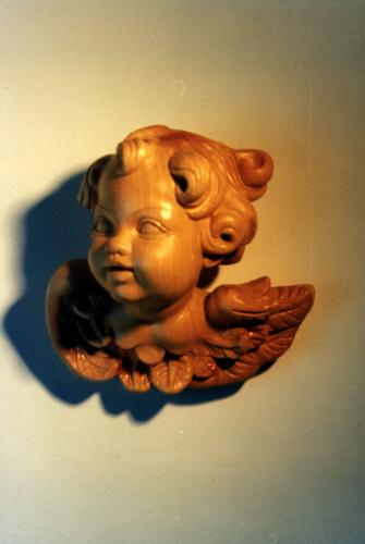 "Testa d'angelo" 38x36 cm. - Legno di cirmolo.