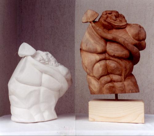 "Minosse" 60x48 cm. - Legno di noce e modello in gesso.